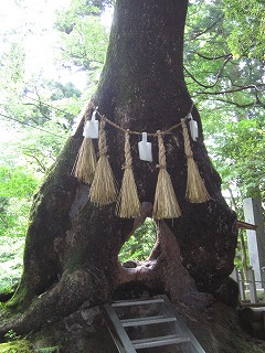 この木の穴を通り抜けると安産の願掛けと言われております